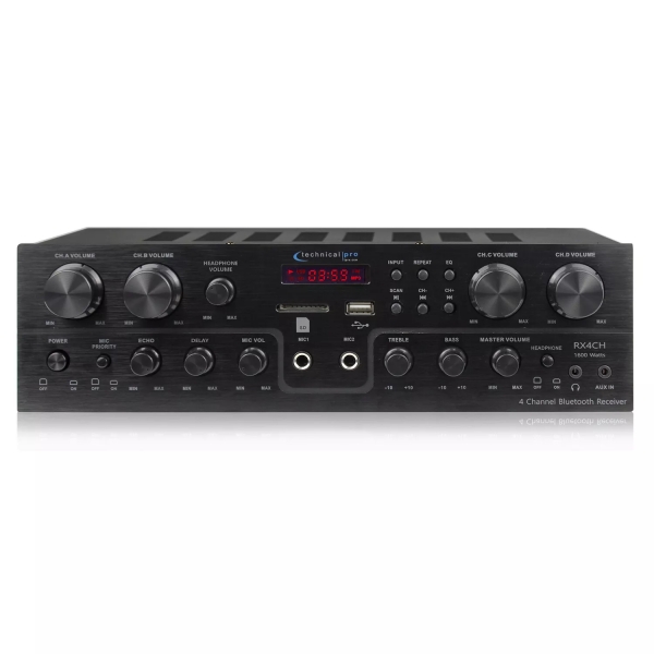 TECHNICAL PRO RECEIVER W/ USB & SD, REMOTE, 4 CHANNELS 1600 WATTS