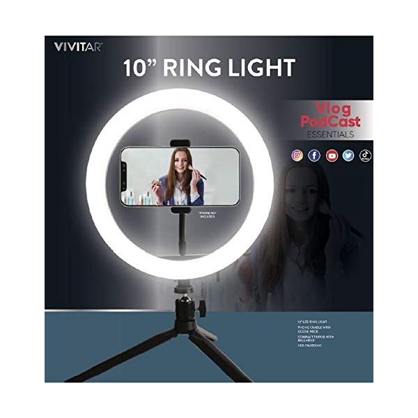 VIVITAR IVLOG 10" RING LIGHT W/ TABLETOP TRIPOD